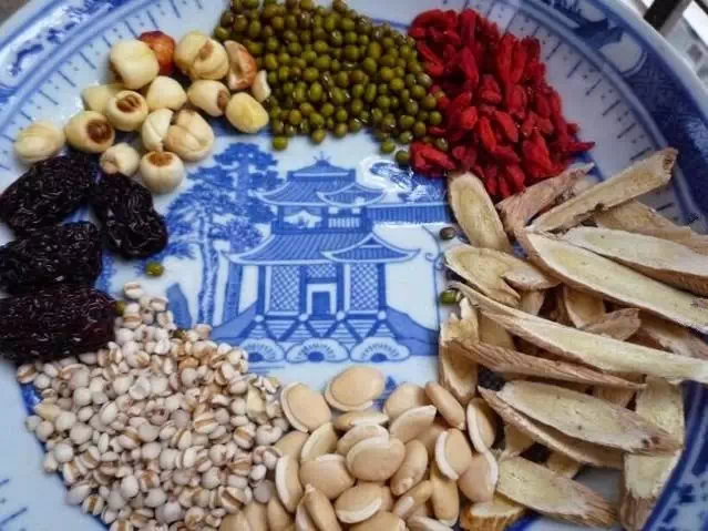 主要成份: 绿豆 50g、扁豆 50g、莲子 50g、薏米 50g、大枣 30g、枸杞 10g(是1个人5天的用量)。